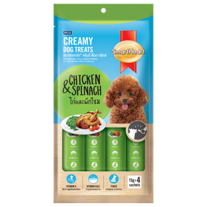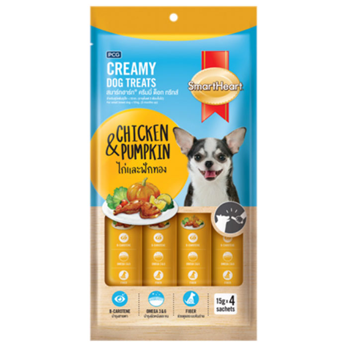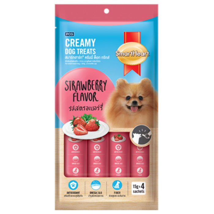 Súp thưởng cho chó Smartheart Creamy Treats là một sản phẩm thức ăn cho chó được sản xuất bởi thương hiệu Smartheart, một trong những thương hiệu thức ăn cho thú cưng hàng đầu tại Thái Lan. Sản phẩm được đóng gói dưới dạng thanh, có 4 hương vị thơm ngon, hấp dẫn cho chó cưng.