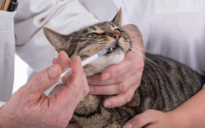 - Xịt vệ sinh răng miệng cho mèo vào miệng mèo.